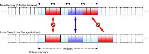 Unless the above-mentioned rules are observed, the MFC will stop, resulting in a DMA alignment error interrupt, which may cause abnormal termination of both the PPE and SPE programs.